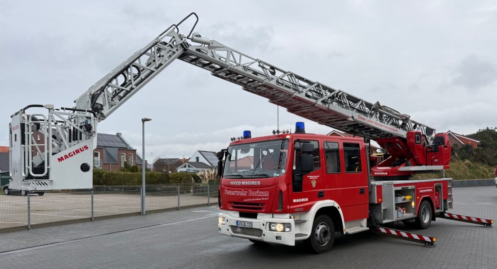 Die Drehleiter ist das Herzstück der Freiwilligen Feuerwehr Borkum. Dieses Fahrzeug rückt bei fast allen Brand- und Hlifeleistungseinsätzen aus. Sie wird z.B. zur Menschenrettung, Brandbekämpfung mittels Löschwassermonitor und Technischen Hilfeleistung eingesetzt. Weitere Besonderheit ist die Fahrzeugkabine.