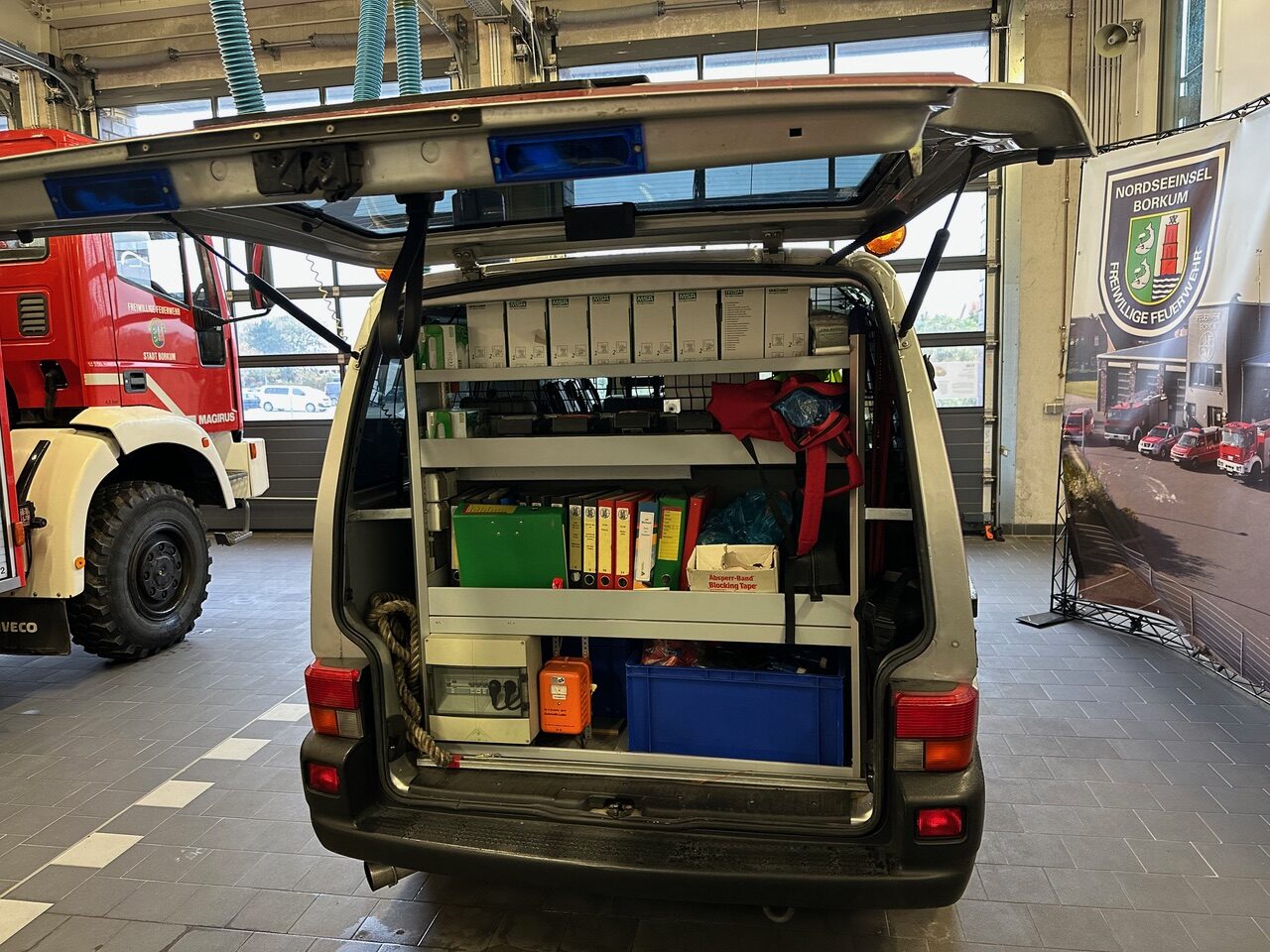 Beschaffung erfolgte aus Einnahmen der fördernden Mitglieder der Feuerwehr Borkum. Die funktechnische Ausrüstung unterstützte der Landkreis Leer, die EDV-Ausstattung sponserte die Borkumer Kleinbahn. Der Einsatzleitwagen...